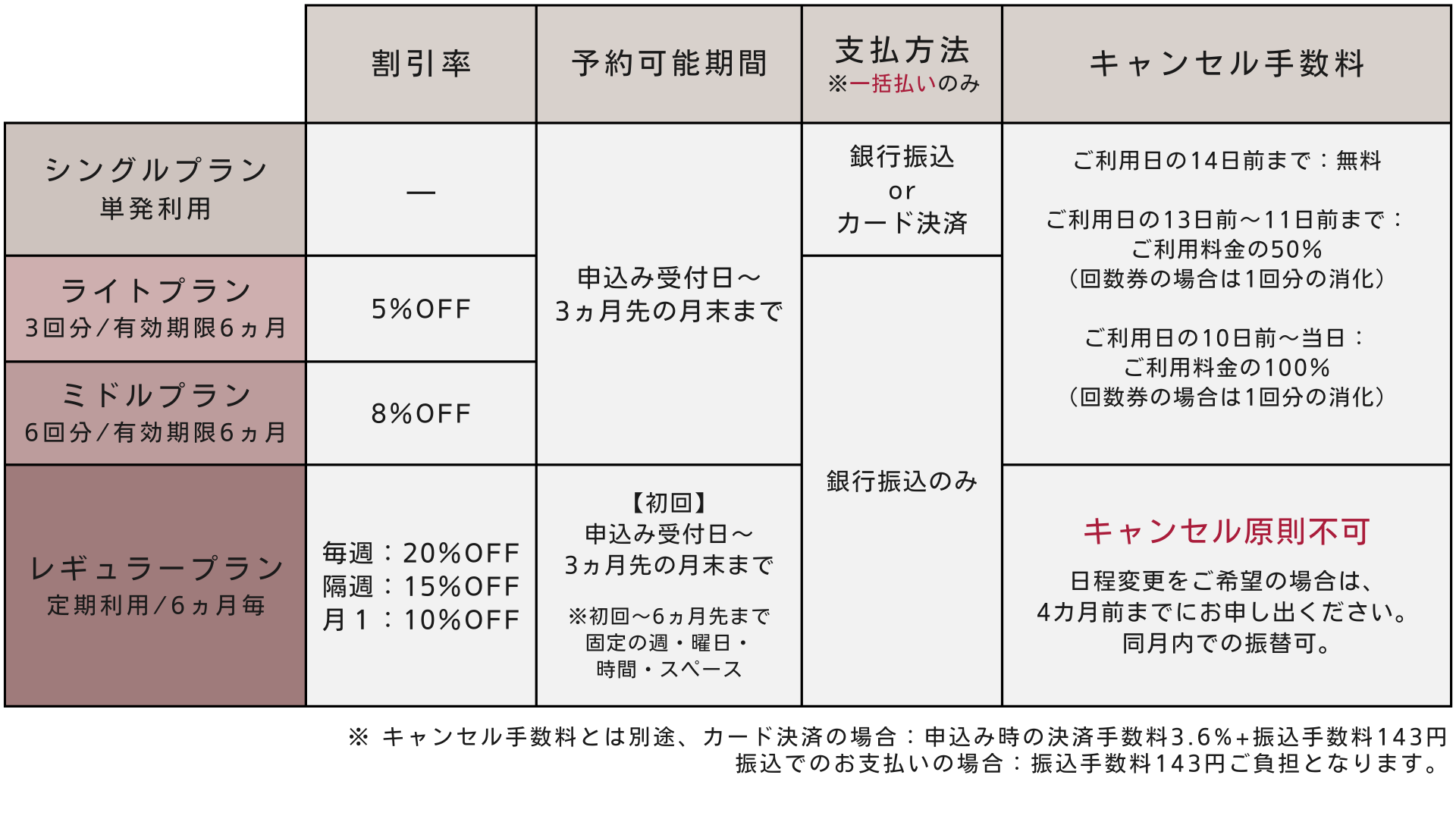 ・ワークショップや教室を少しずつ育てていきたい方・スケジュールは柔軟にしつつ、単発利用よりも少しお得に使いたい方