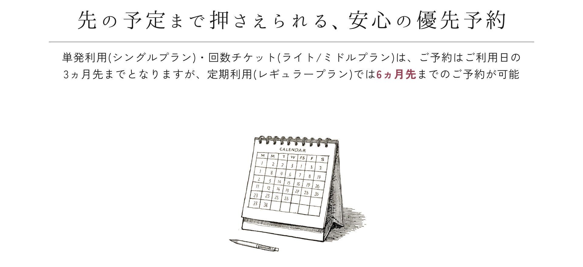 ・予定が流動的で、定期的な利用がまだ難しい方「必要なときに、必要な分だけ」気軽に使えるシンプルなプランです。