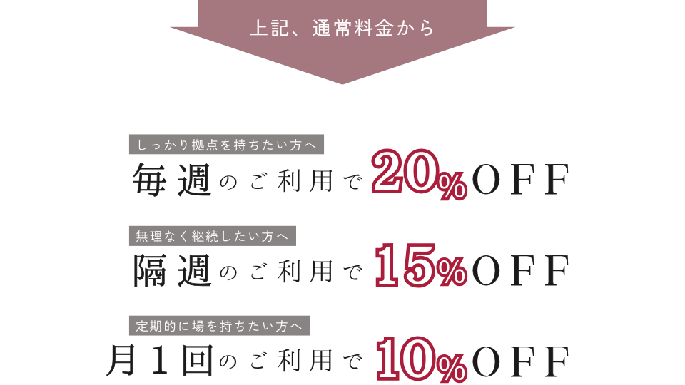 ・ワークショップや教室を少しずつ育てていきたい方・スケジュールは柔軟にしつつ、単発利用よりも少しお得に使いたい方