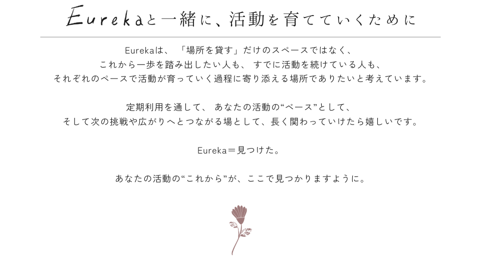 Eurekaを、「その都度借りる場所」ではなく、活動のベースとなる場所として使いたい方へ。