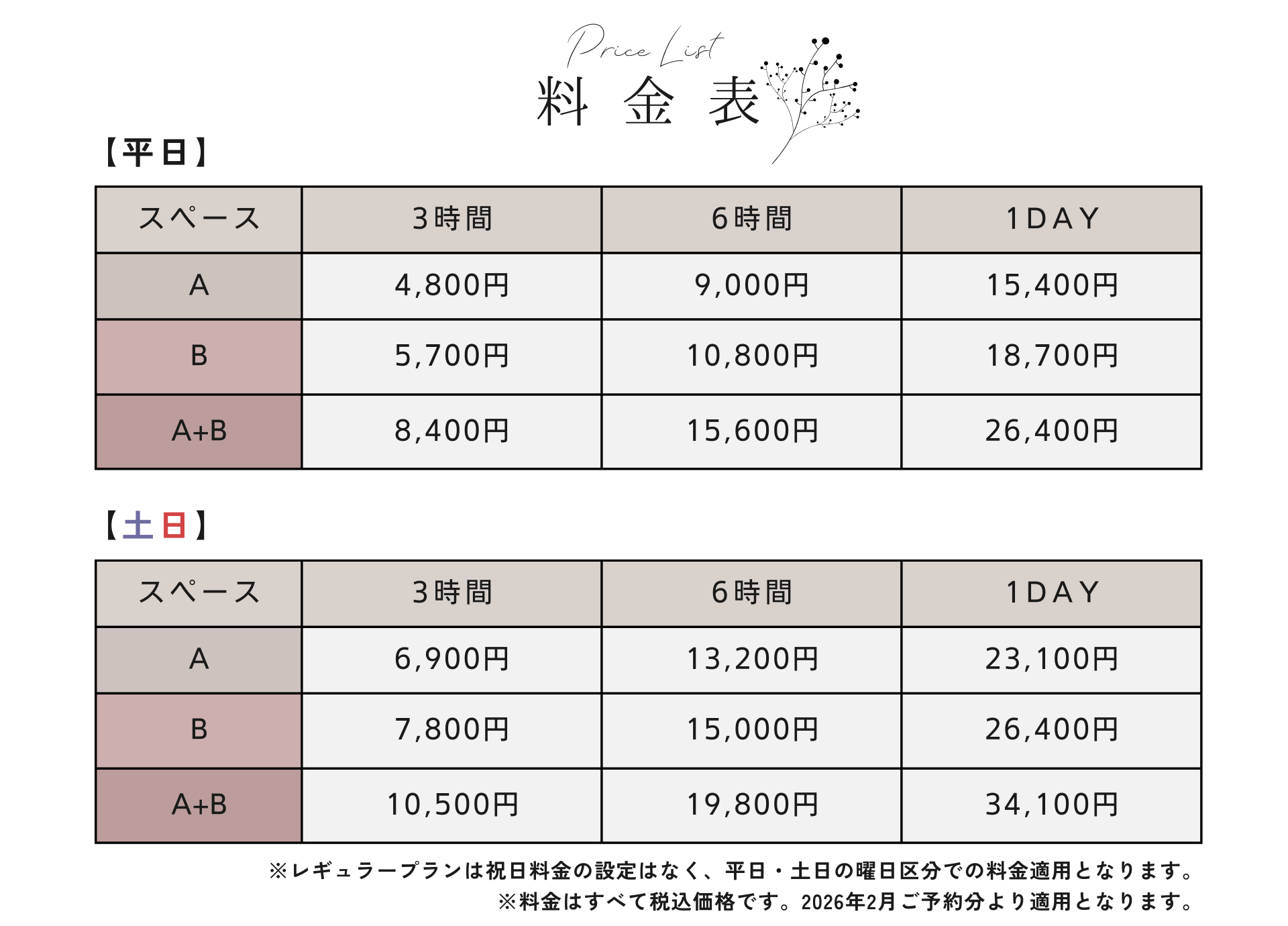各スペースの詳細はこちらをご確認ください。